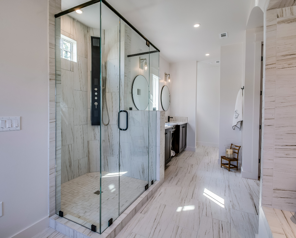 يضفي زجاج الشاور لمسة فخامة وتنظيم للمكان.